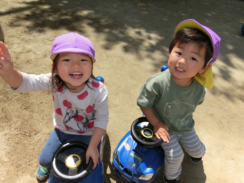 園での生活に慣れ、子ども達もそれぞれお気に入りの場所、 おもちゃができてきたようです。 かわいい笑顔がいっぱい見られています。 園庭遊びや製作をしながら、保育者や友達と一緒に過ごすことを楽しんでいます。