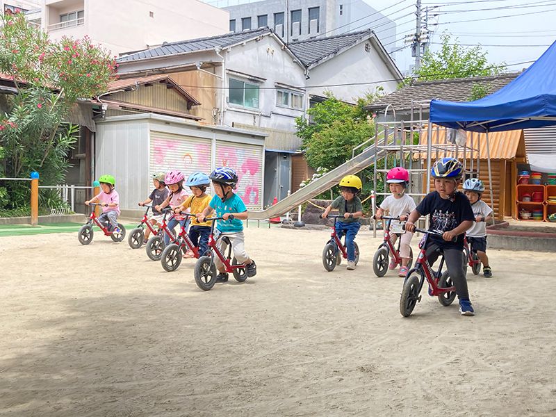 きりん組(年長)とくま組(年中)は、年間を通してストライダーに挑戦しています。