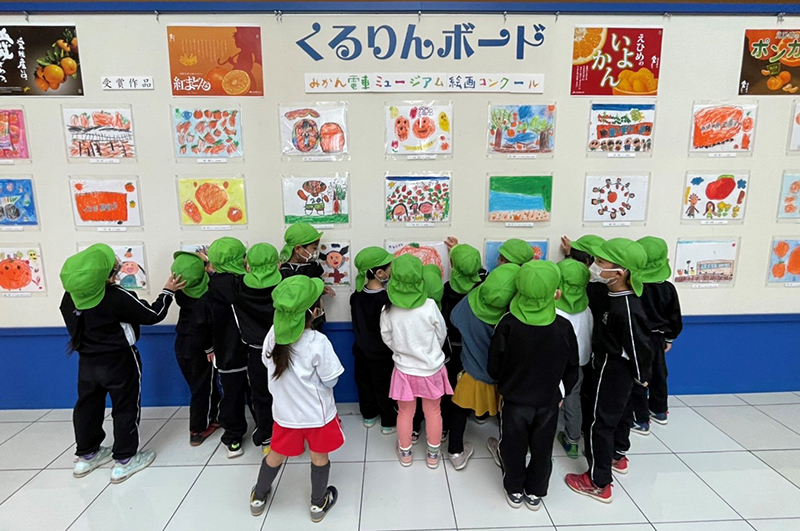 きりん組とくま組が、「だいすき!えひめのみかん」をテーマに絵を描き、
